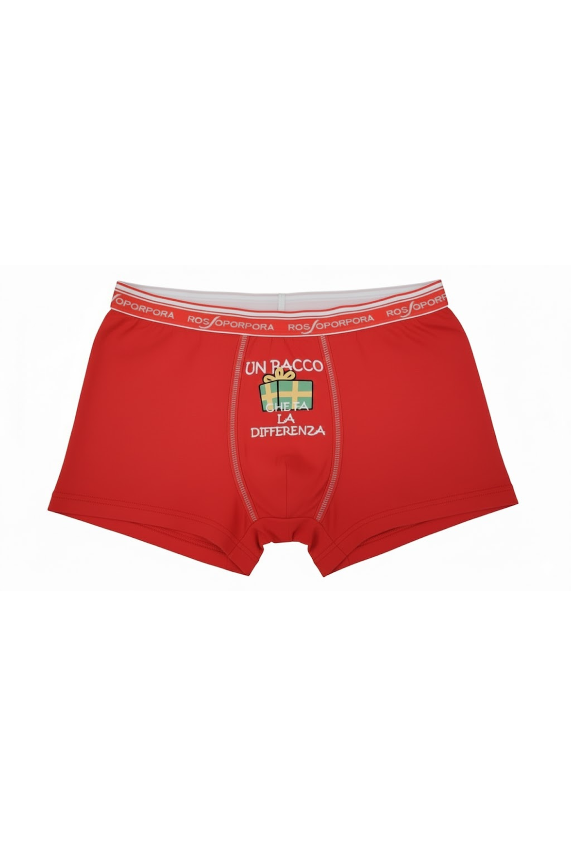 Il boxer Rossoporpora, parte della Christmas Edition, è realizzato in bielastico morbido ed elastico per garantire praticità e sostegno in ogni momento. La stampa frontale dal tono scherzoso rende il modello divertente e originale, perfetto per le feste.
