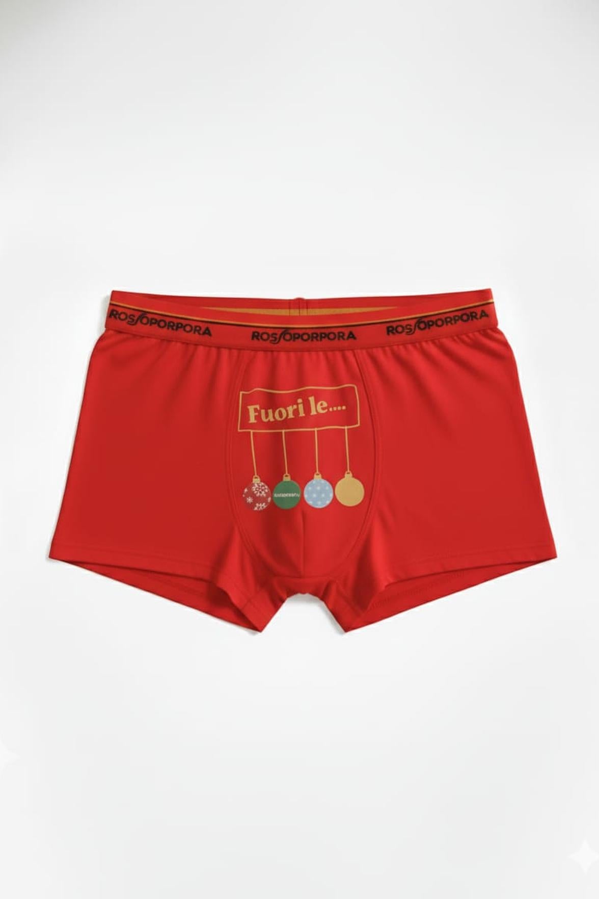 Il boxer Rossoporpora, parte della Christmas Edition, è realizzato in bielastico morbido ed elastico, pensato per garantire comfort e praticità in ogni occasione. Il modello è arricchito da una stampa divertente sul davanti e da bordi rossi che ne valorizzano lo stile.