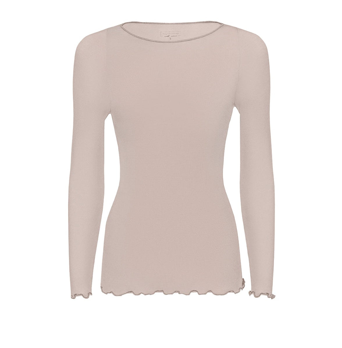 Aggiungi un tocco di raffinatezza al tuo guardaroba con questa maglia a manica lunga, realizzata in un pregiato mix di 85% modal, 9% cashmere e 6% elastan. Un tessuto morbido, leggero ed elastico che avvolge la silhouette con naturalezza, offrendo comfort e stile in ogni occasione. Il design con scollo a barca valorizza le spalle e rende questa maglia perfetta sia da indossare da sola, sia come base sotto giacche e cardigan.