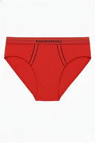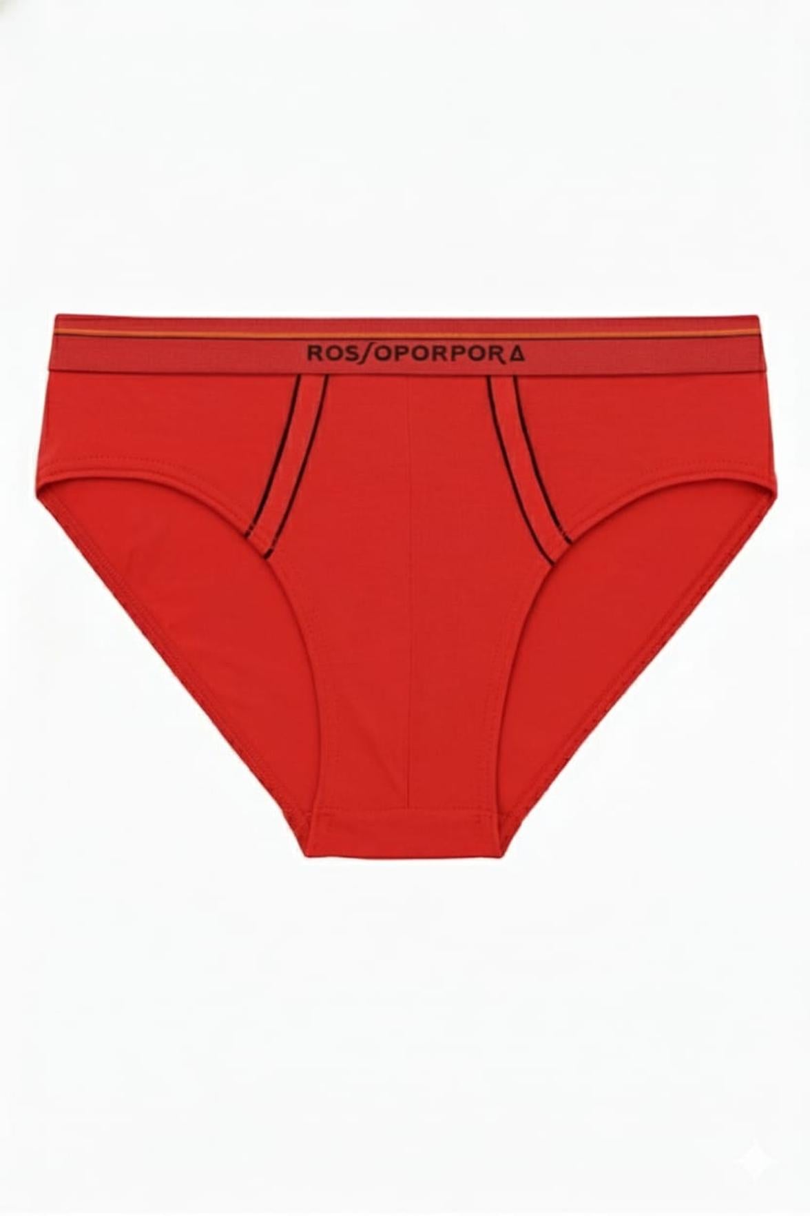 Design: slip rosso con bordi frontali a contrasto rosso/nero ed elastico esterno logato