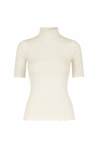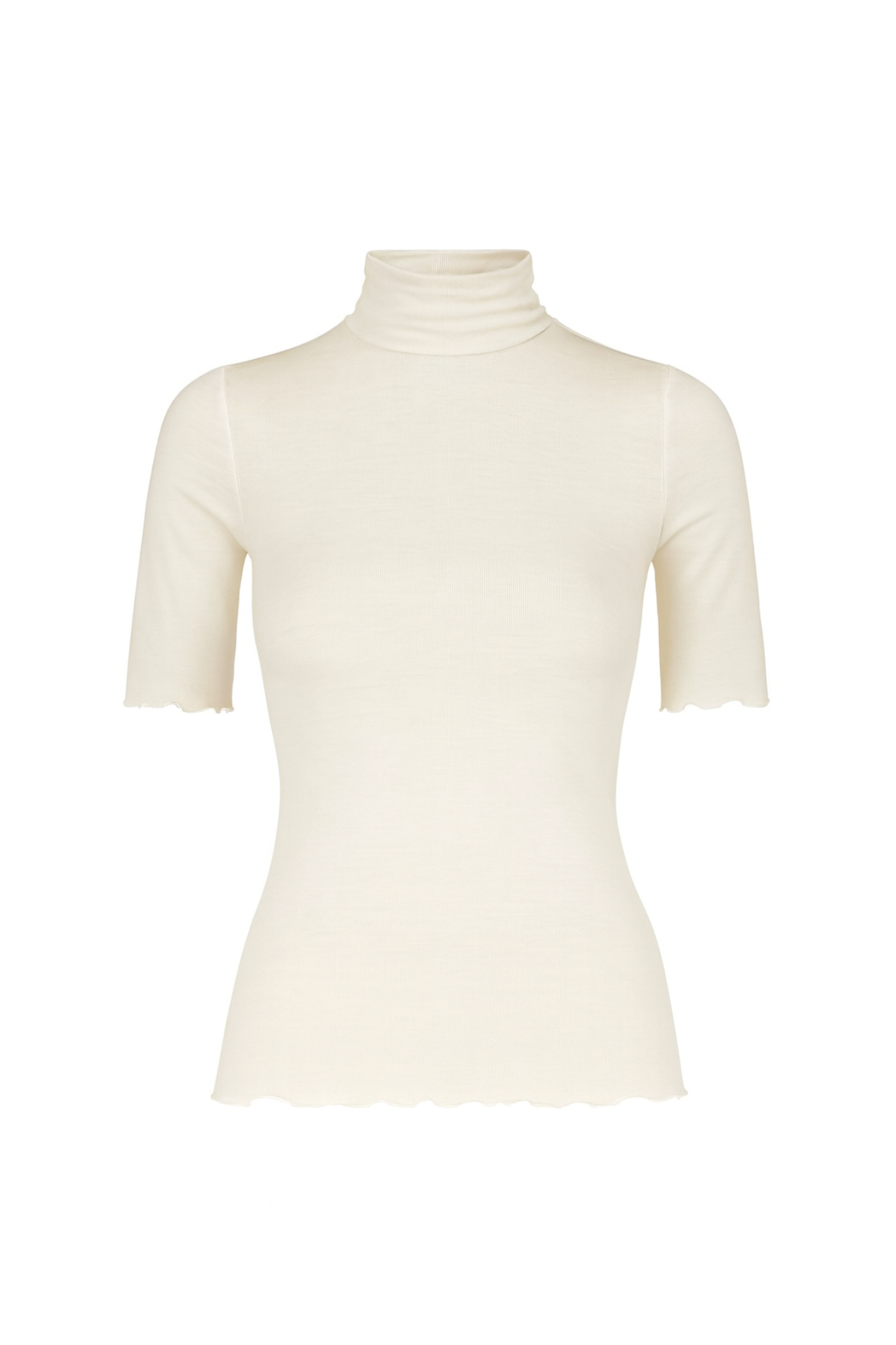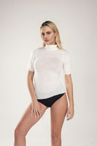 Il collo alto conferisce un tocco ricercato, rendendo questa maglia ideale sia per look quotidiani minimal e curati, sia per completare outfit più eleganti con una nota raffinata. La mezza manica aggiunge freschezza e praticità, mantenendo intatto lo stile senza tempo del dolcevita classico.