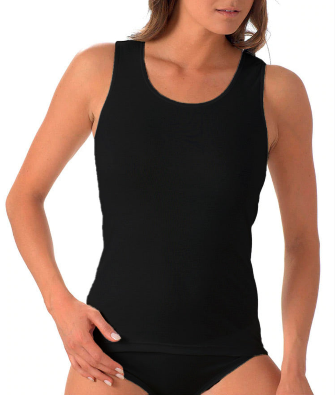 La canotta a spalla larga in costina è un capo essenziale che unisce semplicità e raffinatezza. Realizzata in puro cotone 100%, assicura freschezza, traspirabilità e morbidezza a contatto con la pelle, accompagnandoti con comfort durante tutta la giornata.