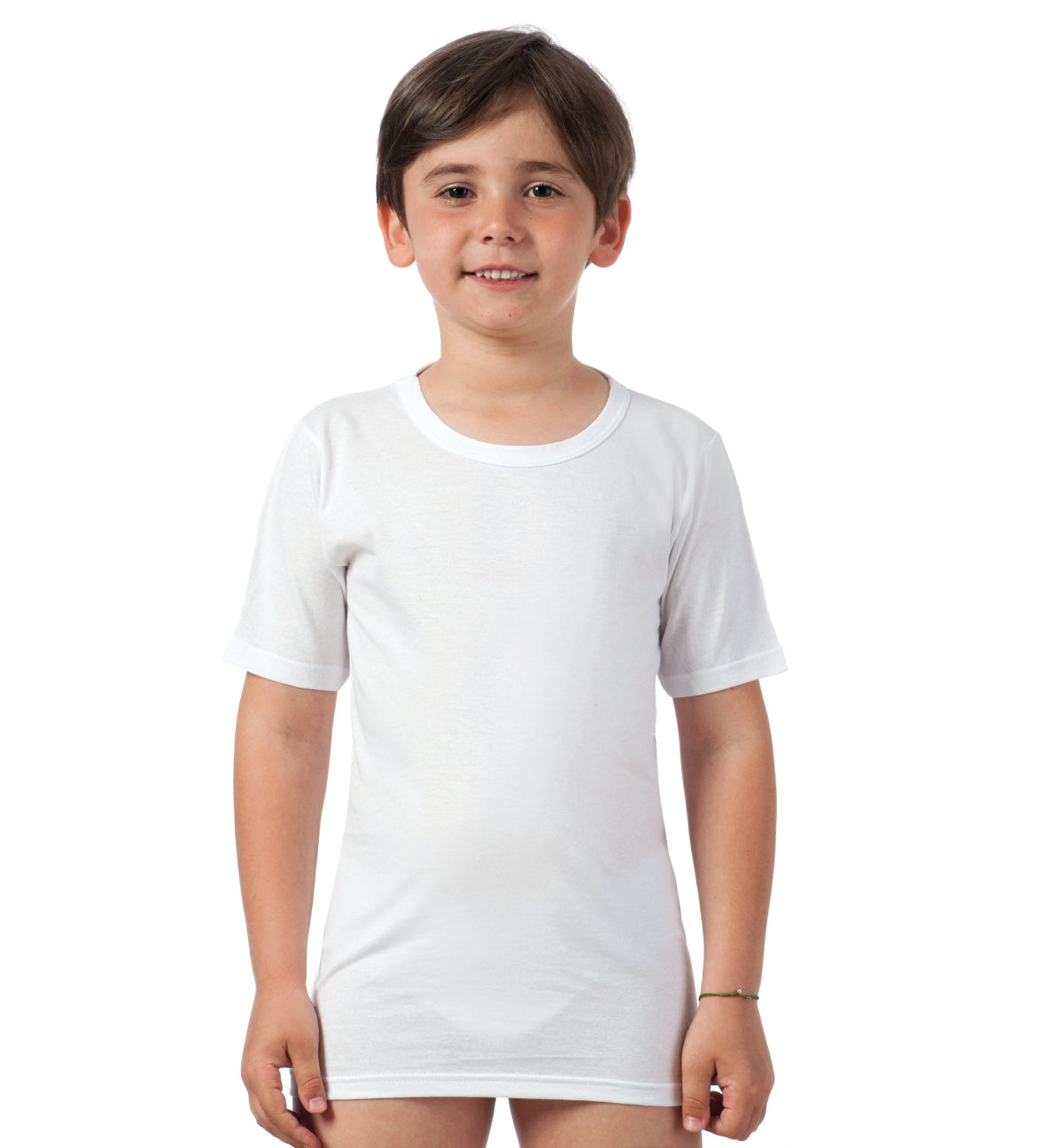 Il design classico con scollo girocollo e taglio regolare garantisce una vestibilità confortevole e libera nei movimenti, rendendola adatta sia come intimo che come t-shirt da indossare da sola. Disponibile in un ampio assortimento di taglie, segue con semplicità le diverse fasi della crescita.