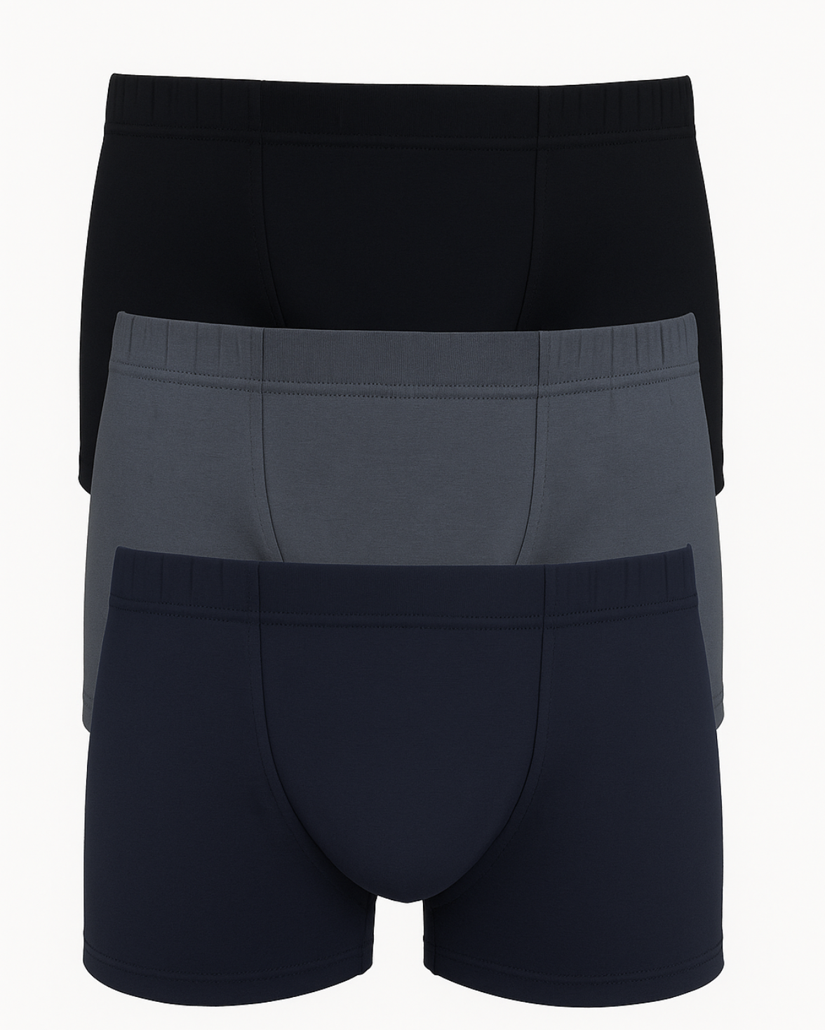 La confezione da 3 pezzi nei colori solo BIANCO o ASSORTITO (grigio, blu e nero) assicura praticità e convenienza, ideale per chi desidera un intimo di alta qualità e dal carattere distintivo.